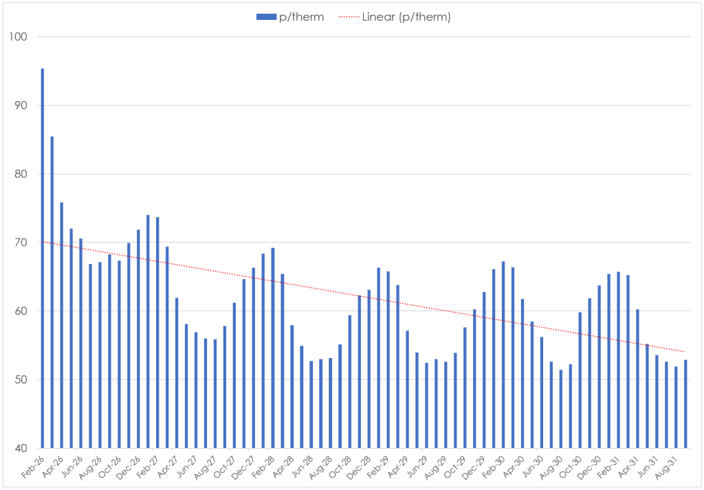 It’s evident from today’s Monthly Forward chart below that, for now, only the Front 2-months have surged in price in anticipation of the wintry conditions, whilst prices further down the curve remain unchanged from last week – so all being well, the long-term picture will remain bearish and we’ll all just need to weather the storm until late-Feb.