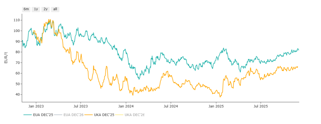 Please see below chart detailing the comparative discount of UKAs versus EUAs (with UKAs evidently less bullish this last week after speculators failed on six separate occasions since mid-Sep to break above the upper extremity of a long-term rising trend channel).