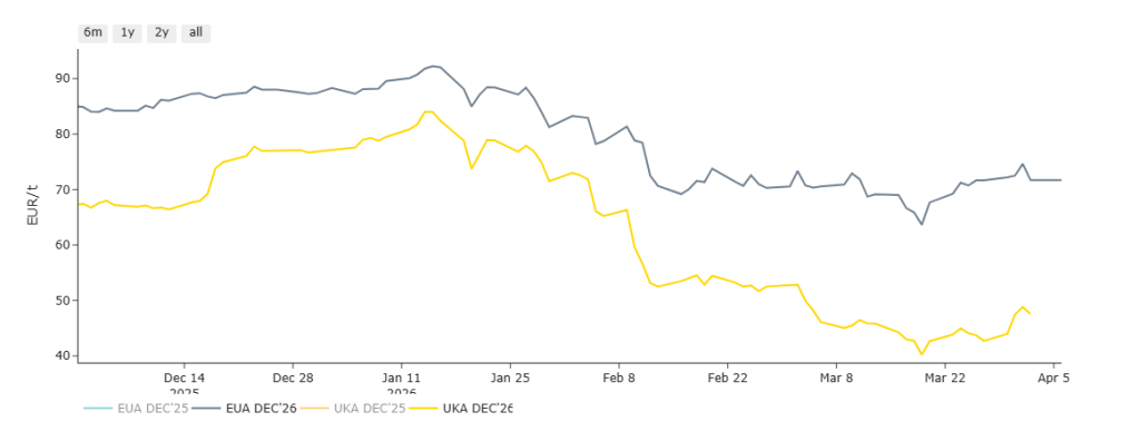 On the Carbon side of things, Dec-26 UKA delivery remains uncoupled from gas volatility with prices touching levels that are 34% below those printed in mid-Jan amid fears that Trump’s war on Iran is slowing global economies (and, in so doing, Industrial outputs).