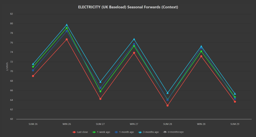 Electricity Seasonal Forwards all the way out are down on the week/month/3-months.